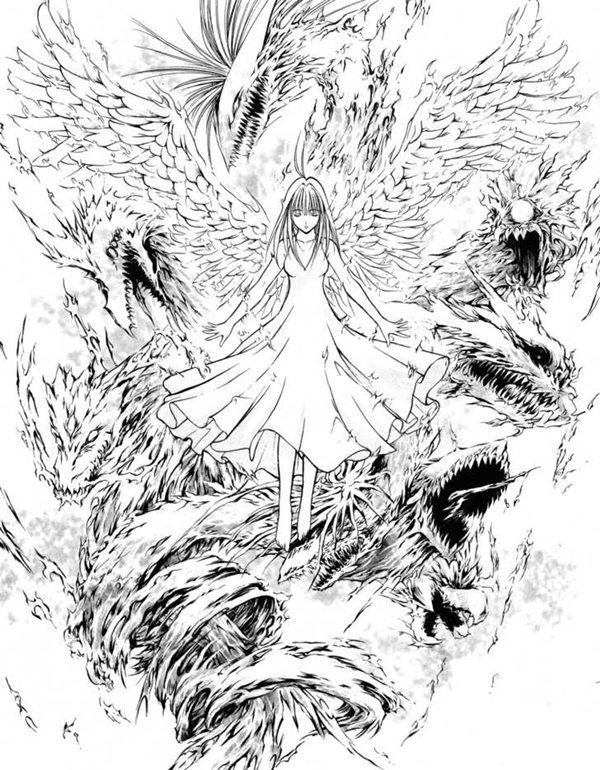 คือสุดยอดอาวุธอสูรที่ฝ่ายนินจาเงาอัคคีไม่ยอมรับ สร้างโดย “ไคมะ” ผู้สร้างอาวุธอสูรสายมืด โดยสวรรค์มิคสัญญีนั้นเป็นอาวุธอสูรที่มีพลังวิญญาณในตนเอง หากรวมร่างกับผู้ที่เหมาะสมจะสร้างร่างที่เป็นสัตว์ประหลาดที่ไม่มีวันตาย และหากได้รวมร่างกับยานางิที่มีพลังศักดิ์สิทธิ์ด้วยแล้ว พลังจะยิ่งสมบูรณ์แบบมากขึ้น ซึ่งร่างอันเป็นการวิวัฒนาการที่แท้จริงนั้นมีชื่อเรียกว่า “เทนโดจิโกคุ”
