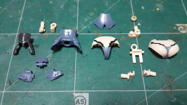 ชิ้นส่วนที่เป็นช่วงตัวจะมีหลายชิ้นที่เป็นชิ้นที่มีการลงสีมาให้แล้ว แต่หลักๆก็จะเป็นชิ้นที่เป็นกางเกงใน ที่มีการเพ้นสีมาให้ และตัวนี้ก็มีข้อต่อตรงเอว ที่ข้อนข้างแน่นกว่าตัวก่อนหน้านี้