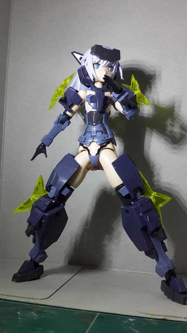 เป็นการต่อเฟรมอาร์มเกิลครั้งแรกของเว็บมาสเตอร์ ที่สัมผัสได้อย่างแรกคือเนื้อพลาสติกดีกว่ากันพลา แข็งแต่เหลาง่าย ดีเทลบางจุดลงสีมาให้สวยเลยเช่น หน้าตัวละคร บั้นทายและจิมิ ประกอบง่ายความยากประมาณกันพลา HG ต่อเสร็จแล้วข้อต่อจุดขยับ แน่นมาก อารมณ์ประมาณโมจีน แต่ก็มีจุดที่หลวมพาลจะหลุดอยู่เรื่อย คือขาเสริมอีกข้างตามหน้ากล่อง นอกจากจะงอเข่าไม่ได้แล้วยังหลวมอีก ถ้าใส่ขาข้างนี้เหมาะเอาไว้ตั้งโชเฉยๆ แขนขามีมาให้เปลี่ยนข้างซ้าย2แบบ อาวุธเยอะจัดเต็มมาก ให้อารมณ์เท่เหมือน MS Girl AGP แต่งานนี้ต้องต่อเอง โดยรวมเป็นไลน์ที่น่าเล่นดีแต่ราคาสูงพอๆกับกันพลา MG ใครชอบแนวสาวน้อยจักรกลต้องลอง