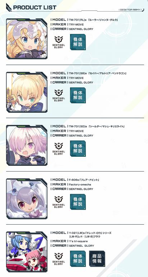 Product List บางส่วนของ Desktop Army ผลิตโดย Kotobukiya ครับผม