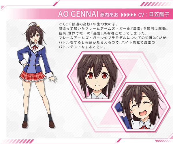 สาวน้อยทรงผมโพลี่เทลสีน้ำตาลที่เป็นตัวละครเอกของเรื่องนี้ เธอเป็นนักเรียนมัธยมปลายปีหนึ่งที่ได้รับเฟรมอาร์มเกิร์ลอย่าง “โกวไร” โดยที่ตัวเธอไม่มีความรู้จักในตัวของเล่นแบบนี้มาก่อน ซึ่งหลังจากเธอได้โกวไรมาได้ทำให้เธอมีความสนใจในเฟรมอาร์มเกิร์ลมากยิ่งขึ้น