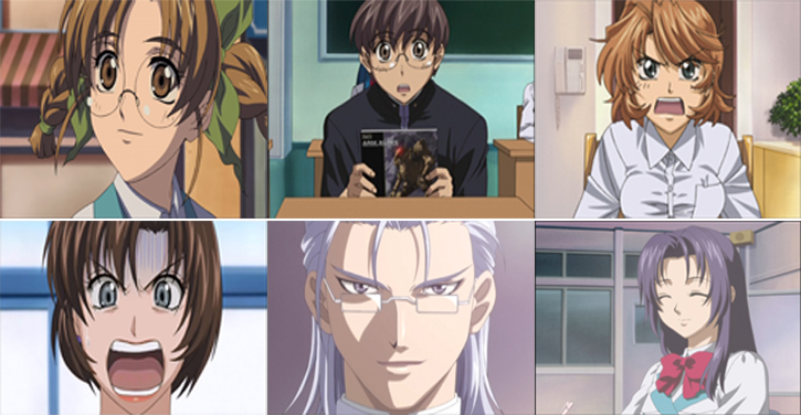 แถวล่าง จากซ้าย ครูประจำชั้นของพวกคานะเมะ คากุระซะกะ เอริ , ประธานนักเรียน อะซึโนะบุ ฮะยาชิมิซึ , เลขาประธานนักเรียน มิกิฮาระ เร็น