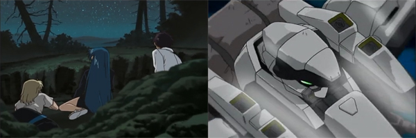 ฝ่ายโซสึเกะกับคานะเมะ ซึ่งไปไม่ทันเครื่องบินช่วยเหลือนั้น ได้หลบเข้าไปซ่อนในป่าจนไปพบกับครูซที่หลบหนีมาเช่นกัน ทั้งสามคิดแผนขอความช่วยเหลือ จนสุดท้ายคือจุดไฟส่งสัญญาณให้ดาวเทียมตรวจการณ์พบ แต่การกระทำนี้ทำให้ศัตรูรู้ตัวและเข้าปิดล้อมป่าที่ทั้งสามซ่อนตัวอยู่ แต่แล้วทาง Mithrill ก็ได้ส่ง Arm Slave ที่เป็นอาวุธลับมาทางพวกโซสึเกะนั่นคือ ARX-7 Arbalest พร้อมแผนหลบหนีมาด้วยโซสึเกะขึ้นขับหุ่นนั้น ฝ่าวงล้อมศัตรู จนเข้าปะทะกับเกาลูนอีกครั้ง โซสึเกะเสียเปรียบพลังลึกลับของเกาลูนเป็นอย่างมาก แต่แล้วพลัง Whispered ของคานะเมะก็บอกวิธีใช้งานระบบ Lambda Driver แก่โซสึเกะ จนเอาชนะเกาลูนได้ และพาคนอื่นๆขึ้นเรือดานังที่จะมารับที่ชายฝั่งเพื่อหลบหนีได้สำเร็จ