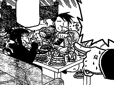 ลายเส้นการ์ตูนของอาจารย์อาราคาว่าจะเห็นว่าตัวละครหน้ากลมๆ แลดูอ้วนท้วมสมบูรณ์กันดีจัง ทำไมอาจารย์ถึงชอบวาดตัวละครที่ดูอ้วนท้วมนะเหรอ… ก็เพราะอาจารย์เค้าไม่อยากให้ตัวละครดูผอมแห้งดูอดอยากไงล่ะ