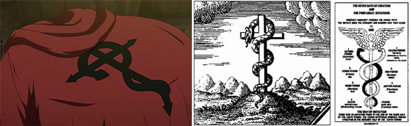 สังเกตกันไหมว่าสัญลักษณ์รูปงูที่พันอยู่บนไม้กางเขนที่อยู่บนเสื้อโค๊ทของเอ็ดเวิร์ดนั้นมาที่มาอย่างไร ที่มาของสัญลักษณ์รูปงูบนไม้กางเขนนั้นจำลองมาจากภาพแกะสลักบนหลุมฝังศพของ “นิโคลัส ฟลาเมล” (Nicolas Flamel) นักเล่นแร่แปรธาตุชาวฝรั่งเศสที่สร้างศิลานักปราชญ์ในตำนาน