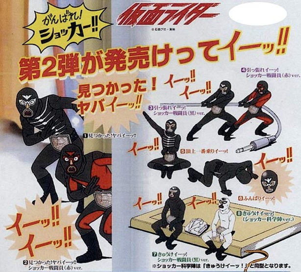 ถ้าอยากจะได้ Gashapon GANBARE SHOCKER 2 ชุดนี้ สรุปว่าต้องซื้อทั้งหมด 8 ตัวกันเลยทีเดียว