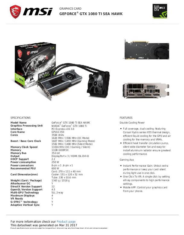 GEFORCE® GTX 1080 TI SEA HAWK X specs.