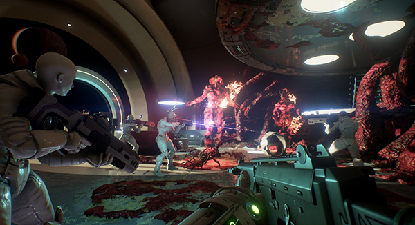 ส่วนที่สองก็คือ การเป็นเกมแนว FPS แอคชั่นสยองขวัญ ถึงแม้จะบอกว่า ก็นี่ยานเราสร้างเอง ต่อเติมเองจะกลัวอะไร แต่เหล่าเอเลี่ยนที่มาบุกยาน ทำให้บรรยากาศเกมเปลี่ยนไปโดยสิ้นเชิง มันเต็มไปด้วยการดวลปืนกันในห้องแคบๆ บรรยากาศชวนอึดอัด และการออกแบบเอเลี่ยนที่น่ากลัว พ่วงด้วยคุณสมบัติการโจมตีที่ไม่ซ้ำกัน ซึ่งนอกจากมันมาเพื่อทำลายยานเราแล้ว มันยังจะมากินสมองผู้เล่นแบบถึงเนื้อถึงตัวด้วย ใครที่เคยเล่น DEAD SPACE แล้วคงพอจะนึกภาพออกแน่นอนครับ