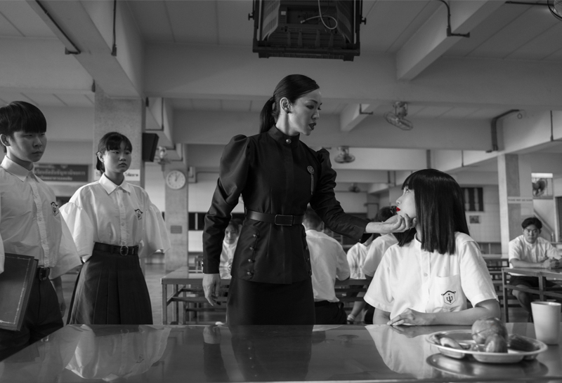 ซึ่ง “การมีสี” = การแสดงให้เห็นว่าตนมีอำนาจ โดยเปฉพาะตัวผอ.โรงเรียนที่ เป็นคนมีสี แถมมีปืนในมือ คอยปกครองคนด้วยกฎระเบียบแสนล้าหลังอย่างเคร่งครัด มันคือการเมืองไทยในซีรีส์ตอนนี้ ที่ทำมากัดทึ้งอย่างสวยงาม และบ้าบอ แฟนตาซีสุดๆ