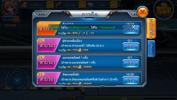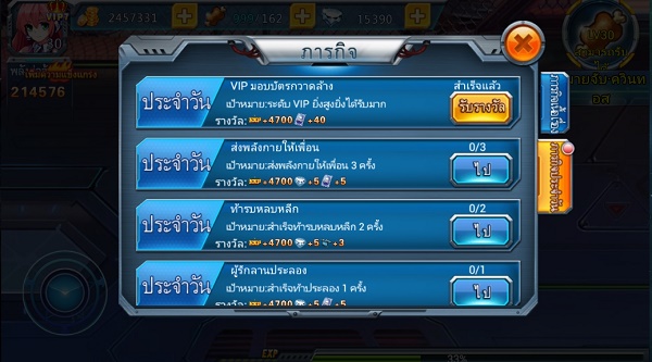 รางวัลจากภารกิจหลัก : EXP ค่าประสบการณ์  , เงิน Gold