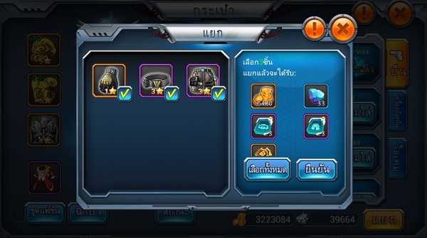 หากตัวละครมีไอเทมที่ไม่ได้ต้องการใช้งานผู้เล่นสามารถใช้การแยกเพื่อย่อยรับไอเทมได้