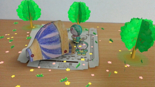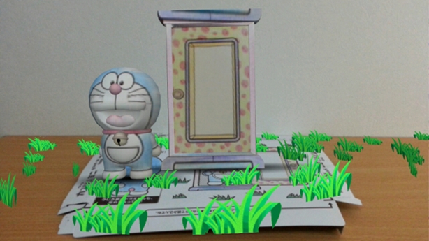 หลังจากที่เราได้ดาวน์โหลดแอพพลิเคชั่นพิเศษลงบน smartphone แล้วก็ให้เปิดแอพพลิเคชั่นและนำ smartphone ไปส่องที่รูปโดราเอม่อนที่เราลงสีเรียบร้อยแล้วหลังจากนั้นรอประมาณ 3 วินาที ก็จะปรากฏภาพ 3 มิติ เป็นภาพเคลื่อนไหวออกมาด้วยเทคโนโลยี Augmenter Reality (AR)