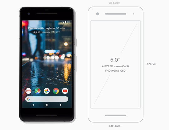 Google Pixel 2 เป็นมือถือสมาร์ทโฟนจากทาง Google ที่มาพร้อมกับสเปคเครื่องที่แรงและระบบปฏิบัติการAndroid 8.0 ที่พัฒนาขึ้นมาตอบสนองต่อผู้ใช้งานกับทางเลือกใหม่ที่ Google อยากแนะนำ วางจำหน่ายครั้งแรกในช่วงเดือนตุลาคมที่ผ่านมา ในไทยยังไม่มีตัวแทนจำหน่าย