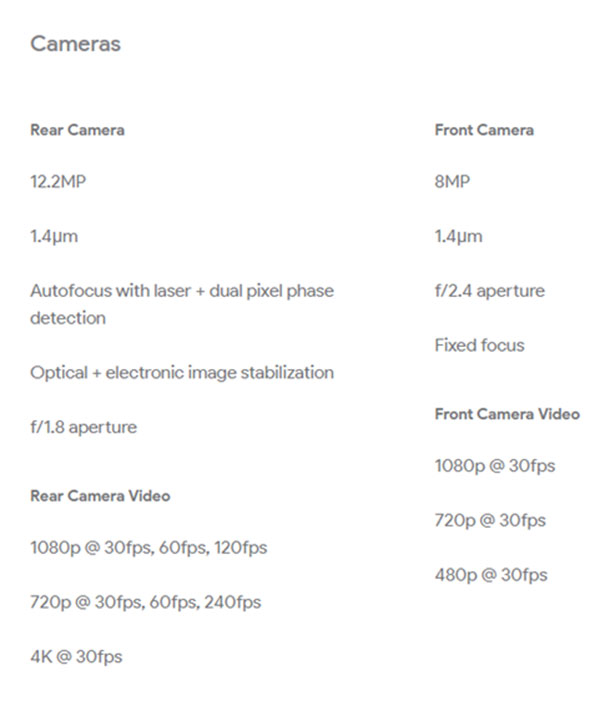 สเปคกล้องทั้งกล้องหน้าและกล้องหลังของ Google Pixel 2