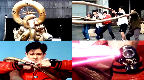 แต่ไม่นานนัก พวกเขาต้องออกไปรับ “หลิน” หลานสาวของปรมาจารย์คาคุที่เพิ่งมาจากเมืองจีน ที่กำลังหลบหนีการไล่ล่าของปีศาจเชือก แต่ในที่สุด ทั้ง 5 คนก็มารวมตัวกันในฐานะไดเรนเจอร์