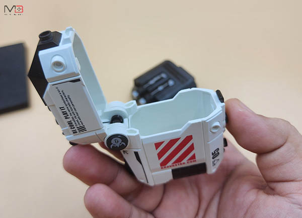 ซึ่งเจ้ากล่องภายใน ที่มีแบตบรรจุ พร้อมหูฟังนั้นจะออกแบบมาพอดีกับกล่องภายนอกโดยยึดให้เข้าที่ด้วยสกรูตัวเดียวที่ด้านล่าง (ใช้แผ่นอคริลิกแทนไขควง)