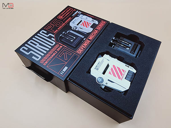 GravaStar Sirius P5  มาพร้อมกับเคสพลาสติกด้านนอก 2 ชิ้น (รวมฝาเปิดปิด)  ทั้งหมดมีขนาดกะทัดรัดและถือได้ง่ายด้วยมือเดียว ด้วยระบบสปริงโหลดด้านบนแบบไฟแช็ก Zippo ที่ดีดแรง เด้งไว แต่ถ้าว่ากันตามจริง ก็ไมใช่ของที่เปิดปิดเล่น และอาจต้องใช้ความระมัดระวังเพิ่มเล็กน้อยในการเปิดใช้งาน