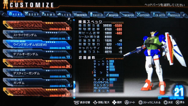 แผงชิ้นส่วนใหม่ที่ได้มา จะสามารถเอามาต่อเป็นชิ้นส่วนใหม่ได้ที่เมนูปรับแต่งหุ่น