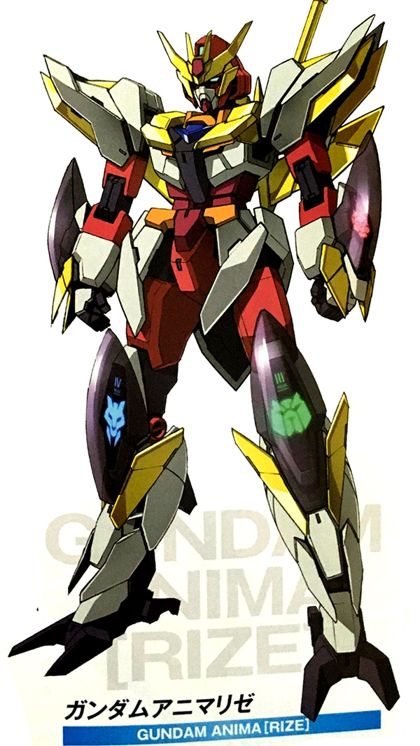 ในนิตนยสารมีภาพของกันดั้มตัวเอกของเรื่อง อย่าง Gundam Anima [RIZE] ที่ออกแบบ และสร้างโดยตัวเอกของเรื่องที่ชื่อว่า Rize โดยมี Core Gundam Rize เป็นกันดั้มตัวแกนกลางถอดเกราะเปลี่ยนได้ แต่ยังไม่ระบุความสามารถและพลังที่แท้จริงออกมา