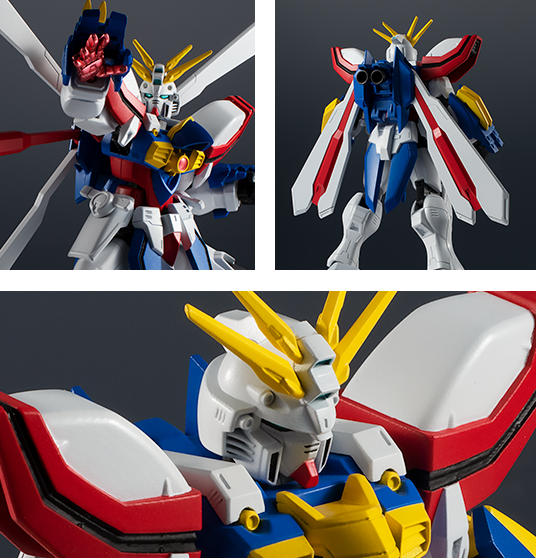GF13-017NJII God Gundam ตัวแทนแห่ง Neo Japan ที่เข้าร่วมการต่อสู้ Gundam Fight ครั้งที่ 13 โมบิลสูทของ Domon Kasshu รับหน้าที่ถัดจาก Shining Gundam หลังจากที่ไชนิ่งพังยับเยินไป ทำให้ Neo Japan ต้องดันก็อดกันดั้มออกมาใช้ก่อนกำหนดการ เดิมทีแล้วโดมอนต้องการเก็บก็อดไว้ใช้แค่เพียงรอบชิงเท่านั้น ด้วยความช่วยเหลือของ Rain Mikamura ก็ทำให้การถ่ายโอนข้อมูลการต่อสู้จากไชนิ่งไปสู่ก็อดกันดั้มได้ทันเวลา