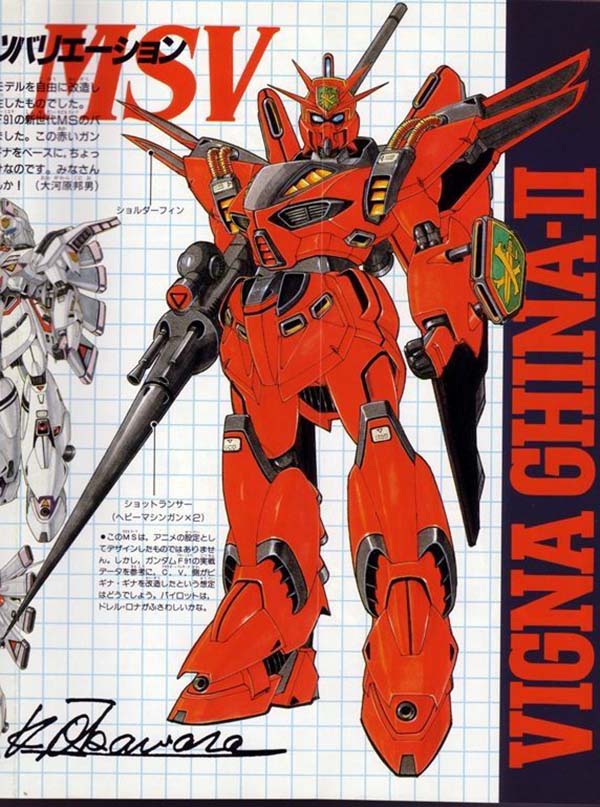 Vigna Ghina II แวริเอชั่นโมบิลสูทที่ปรากฏตัวใน F91-MSV ขับโดย Dorel Ronah พัฒนาต่อมาจาก Vigna Ghina ภายหลังจากการสร้าง F91 ทำให้ได้รับเทคโนโลยีและอุปกรณ์จาก F91 มาบ้าง เช่น Shoulder Fins ที่ช่วยในระบบคายความร้อน