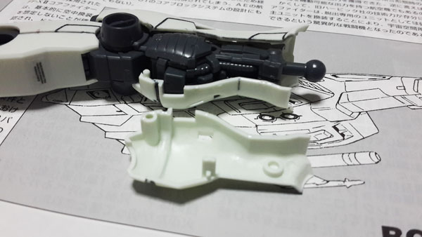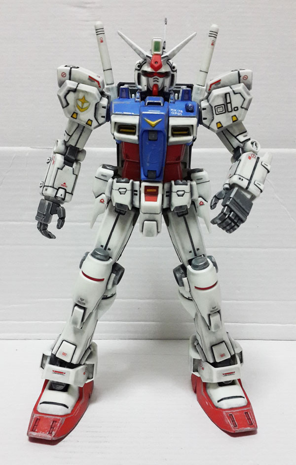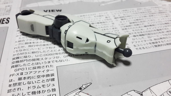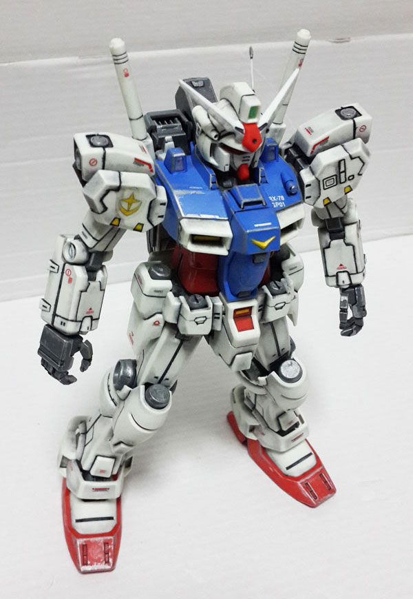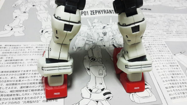 เจ้าหุ่น MG GP01 นอกจากรายละเอียดจะจึดชืดแล้ว ยังทิ้งรอยประกบตรงน่องไว้ มองดูไม่งามตา