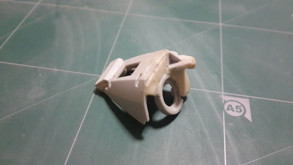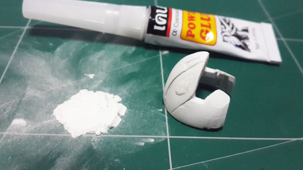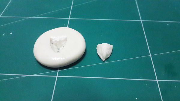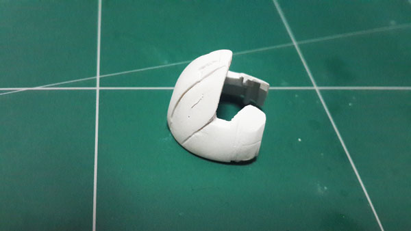 ชิ้นส่วนปาก จะใช้ต้นแบบมาจาก Zeta Gundam ทำการผสมพุดตี้ให้มีขนาดใหญ่กว่าชิ้นงานที่จะปั้ม เสร็จแล้วทาวาสลีนให้ทั่วตัวชิ้นงานและพุดตี้ แล้วค่อยกดชิ้นงานเข้าไปในพุดตี้ แล้วทิ้งไว้ 1 วันเต็มๆ แล้วค่อยแซะร่องเพื่อนำชิ้นงานออกมา เท่านี้ก็จะได้แม่พิมพ์สำหรับปั้มชั้นงานแล้ว