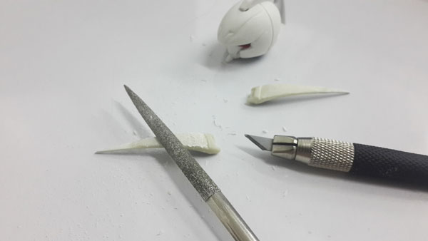 ในส่วนหนวดที่ต้องการความเรียบเนียนและได้ขอบที่คม สามารถใช้ตะไบขัดแต่ง แล้วค่อยเก็บรายละเอียดด้วยกระดาษทรายเบอร์ 600 1000 อีกที