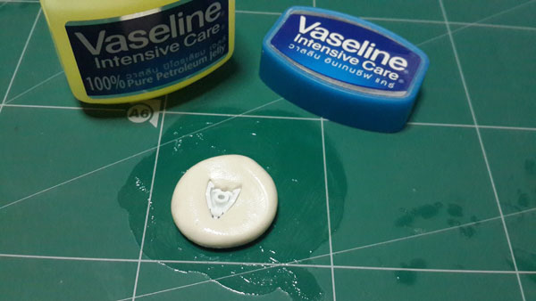 วาสลีนสามารถซื้อได้ที่ 7-11 และควรทาให้ทั่วชิ้นงานเพื่อป้องกันไม่ให้ยึดรวมเป็นเนื้อเดียวกับพุดตี้