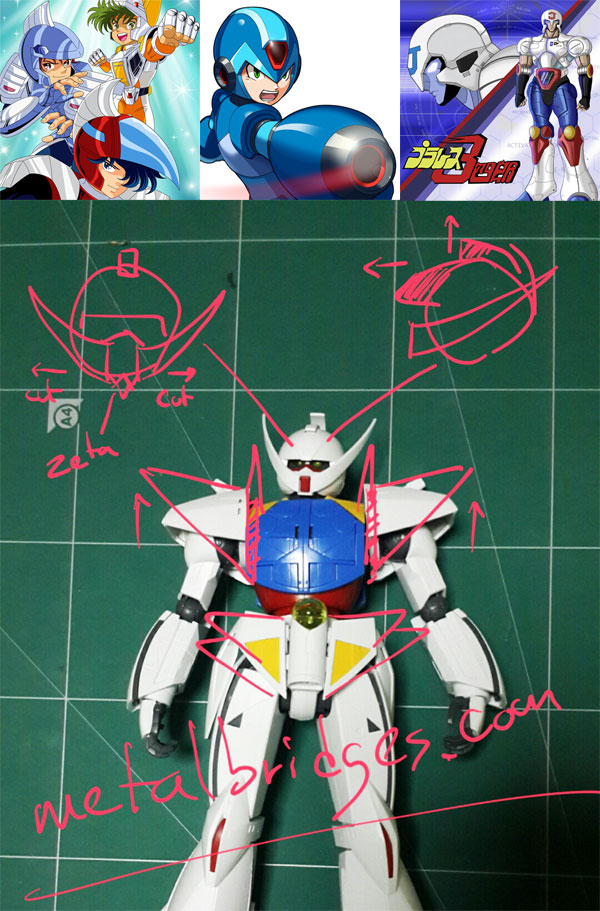 3. ศัลยกรรมหน้าหุ่นใหม่ โดยการเสริมน้าผาก แยกหนวดออกมาเป็นแก้ม และปั้นปากใหม่จาก Zeta Gundam