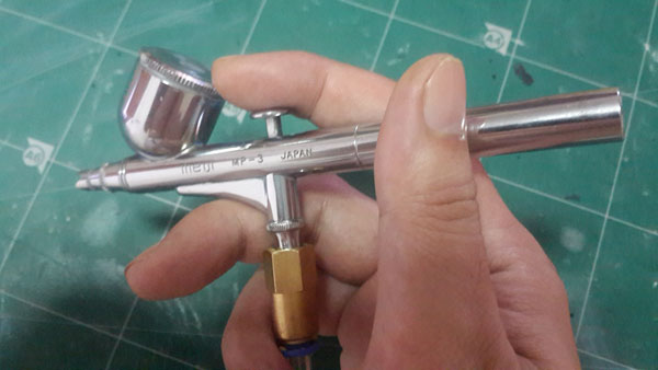 *** การพ่นสีแอร์บรัชจะมีละอองสีที่เล็กมาก ซึ่งเป็นอันตรายกับร่างกาย ขณะทำงานควรหาอะไรมาปิดจมูกด้วยครับ
