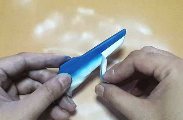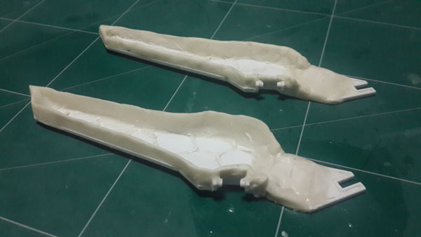 ปีกเดิมที่ให้มา บางเฉียบมาก จนไม่มีพื้นที่วางสำหรับยัด LED Line จึงจำเป็นต้องเสริมความหนาของขอบปีกด้วย Epoxy ทำการพอกและปั้นให้สูงขึ้นมาอีก 3 เท่า ให้สามารถวาง LED Line ด้านในปีกได้ แล้วค่อยปิดด้วยปีกใสสีเหลืองชิ้นเดิม รอเวลาเมื่อ Epoxy แข็งตัวได้ที่แล้ว ก็ทำการขัดแต่งทรงด้วยตะไบและกระดาษทรายเบอร์ 400 ให้เรียบเนียนเสมอกัน