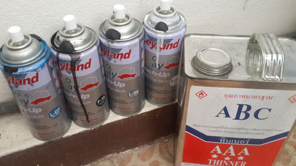 สำหรับคนที่ขี้เกียจผสมสีกับทินเนอร์บ่อยๆ สามารถใช้สีสเปรย์กระป๋องได้เลย เพราะสีในกระป๋องชนิดนี้จะทำการผสมทินเนอร์มาให้พร้อมใช้งานเรียบร้อย วิธีการใช้ก่อนอื่นให้ใช้ตะปูเจาะลมออกจากกระป๋องให้หมดก่อน แล้วค่อยเทสีออกจากรูนั้นเพื่อใช้งาน และหลังจากใช้งานเสร็จแล้วก็ใช้ดินน้ำมันหรือเทปกาวปิดรูกระป๋องเพื่อเก็บไว้ใช้ในครั้งต่อไป