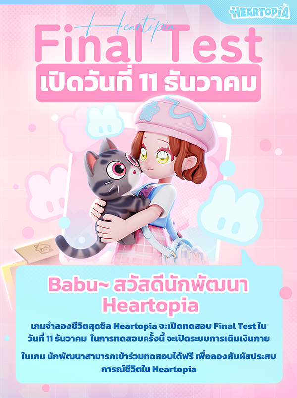 เกม Heartopia เตรียมเปิดทดสอบ Final Test ทั่วโลก ตั้งแต่ 11 ธันวาคม 2568 เวลา 10.00 จนถึง 24 ธันวาคมนี้เท่านั้น