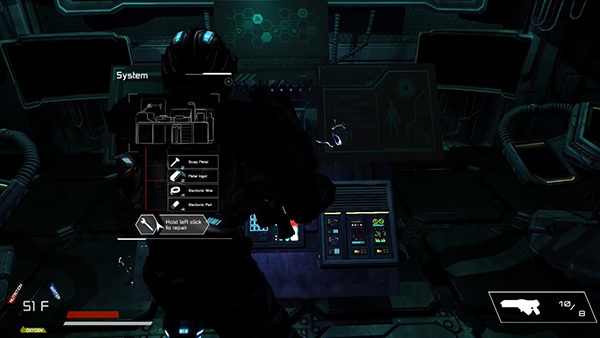 ระบบการเล่นนำเสนอรูปแบบ TPS Shooter มุมมองผ่านหลังตัวละคร ผู้เล่นต้องพยายามเอาตัวรอดจากเหล่าสิ่งมีชีวิตประหลาดและไขปริศนาต่างๆ ในเกมที่มีทั้งหมด ซึ่งมีความคล้ายคลึงกับเกม Dead Space อยู่ไม่น้อย อาจจะต่างกันตรงจออินเตอร์เฟสที่ดูเรียบง่ายไม่วุ่นวาย ค่าสเตตัสของตัวละครจะมีเรื่องของปัจจัยมากำกับการกระทำในระหว่างการเล่น อย่างเช่นมีค่าความหิว (Nutrition) ความกระหายน้ำ (Water) ระดับของออกซิเจน (O2) ระดับความเหนื่อยล้า (Stamina) และแถบเลือด (HP) ซึ่งผู้เล่นจำเป็นต้องหาไอเท็มมาฟื้นฟูค่าปัจจัยอย่าง Healing Kit หรือ Space Food อยู่ตลอดเวลา