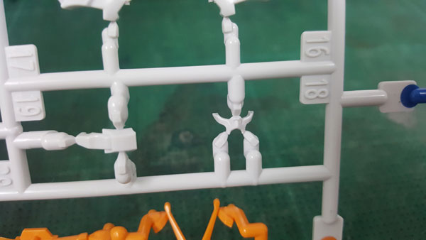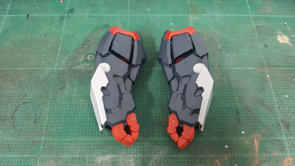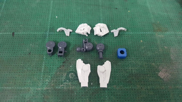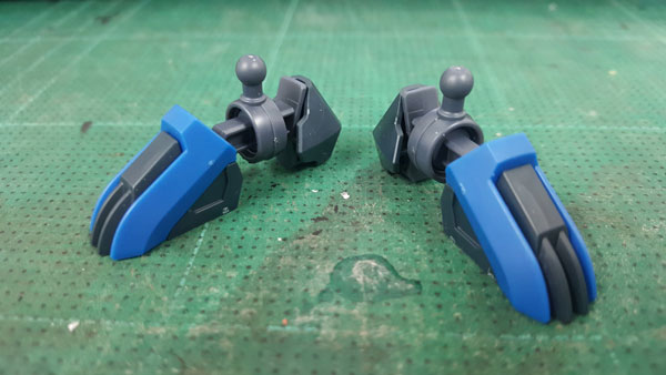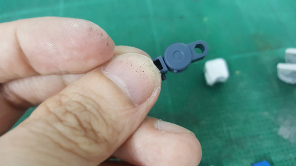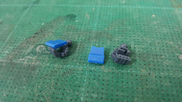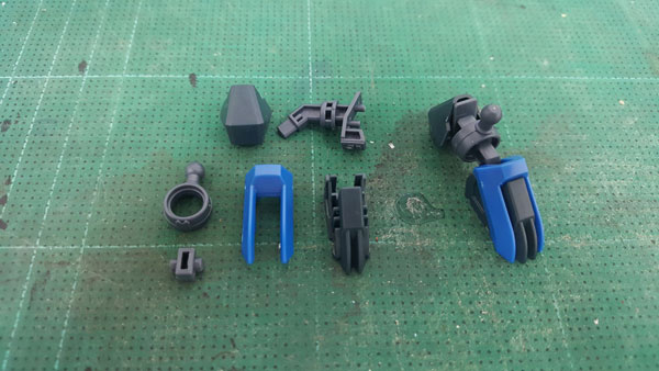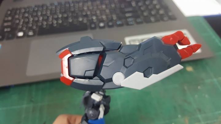 ชิ้นที่เป็นมือของตัวนี้จะให้มาแค่ชุดเดียว คือมือที่เป็นมือกำสำหรับถืออาวุธ ส่วนการประกอบก็คงไม่ต้องอธิบายอะไรมาก แต่ก็มีจุดที่ควรระวัง คือเมื่อเราประกบลงไปแล้วก็ไม่ควรแกะเข้าแกะออกบ่อย เพราะชิ้นส่วนที่เป็นเดือนที่กดลงไปจะหลวมได้ เพราะชิ้นที่เป็นเบ้าสำหรับเสียบเดือยของชิ้นมือจะเป็นพลาสติด ABS ที่มีความนิ่มอยู่ จะไม่เหมาะที่แกะเล่นบ่อยๆ