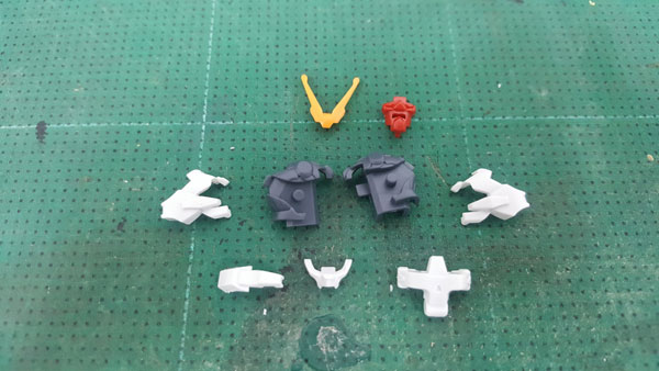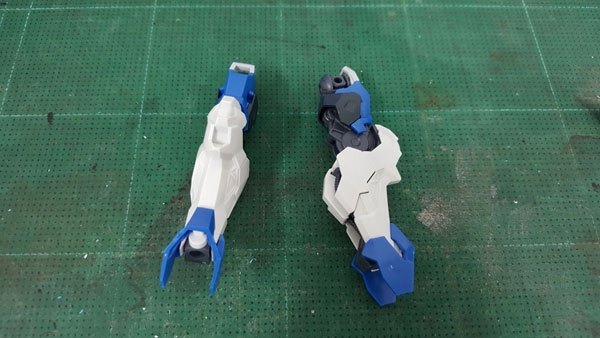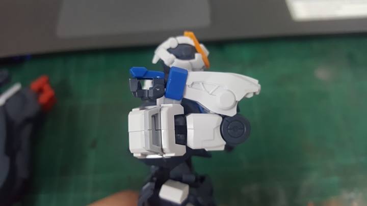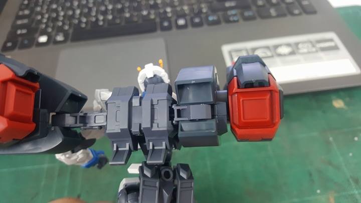ส่วนที่เป็นแขาทั้ง 2 ข้างจะประกอบเหมือนกันทั้งคู่ แต่จะมีข้อเสียอยู่ที่ข้อศอก เพราะข้อศอกจะเป็นชิ้นที่เอาจุดหมุนมาประกบไว้เฉยๆ เวลาเล่นหรือขยับมากๆจุดนี้จะ “หลวม” แล้วสุดท้ายก็คงจบที่ “อัดกาว”