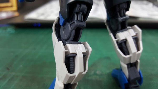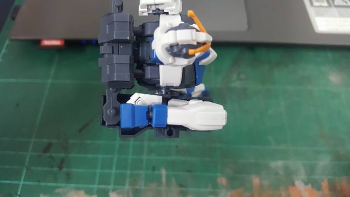 จุดที่เป้นข้อเสียของส่วนนี้ก็คือ ส่วนที่เป็นชิ้นสีฟ้าด้านล่างที่เป็นเหมือนขากางเกง ชิ้นส่วนนี้จะเป็นชิ้นที่เอาเดือนมาประกบติดกันแค่ชิ้นเดียว ทำให้เวลาจัดท่าหรือจัดแอ็คโพสต์ จะหลุดออกมาด้วย วิธีที่ง่ายที่สุดของการแก้ปัญหาก็คือ “อัดกาว” เลยครับ