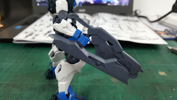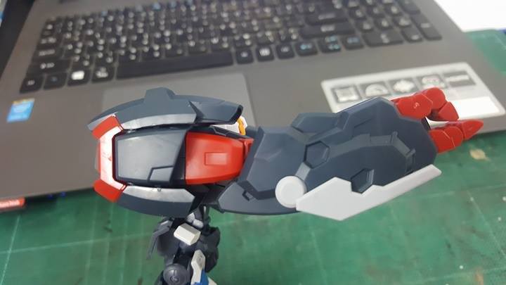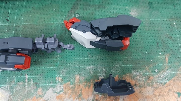 ระบบการประกอบร่างที่เป้นแขนขนาดใหฐ่ของ Dantalion Gundam จะเป้รแบบถอดประกอบนะครับ คือต้องถอดชิ้นส่วนที่เป็นเหมือนตัวล๊อคออดเป็น 2 ชิ้น คือชิ้น บน – ล่าง ออกก่อน แล้วจึงพับแขนของตัวกันดั้มขึ้นด้านบนแล้วจึงค่อยเอาชิ้นส่วยที่เป็นเหมือนเกราะมาประกบกลับลงไป