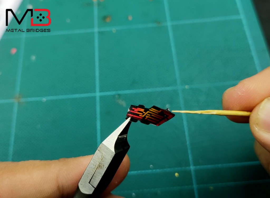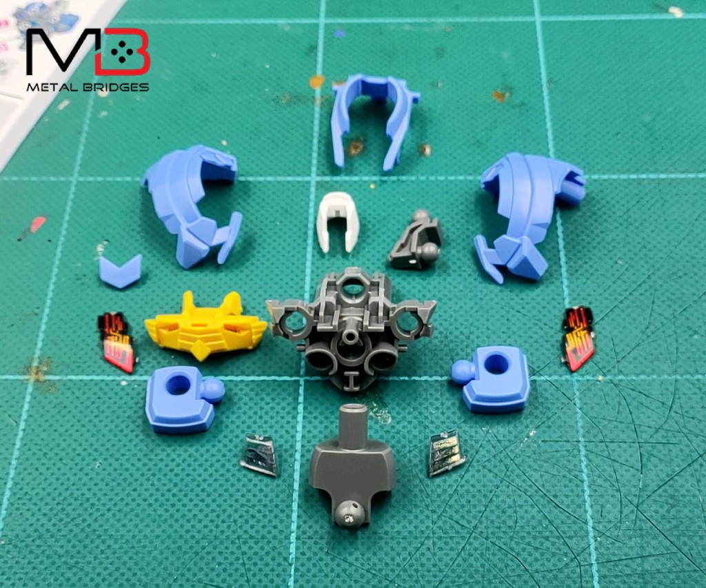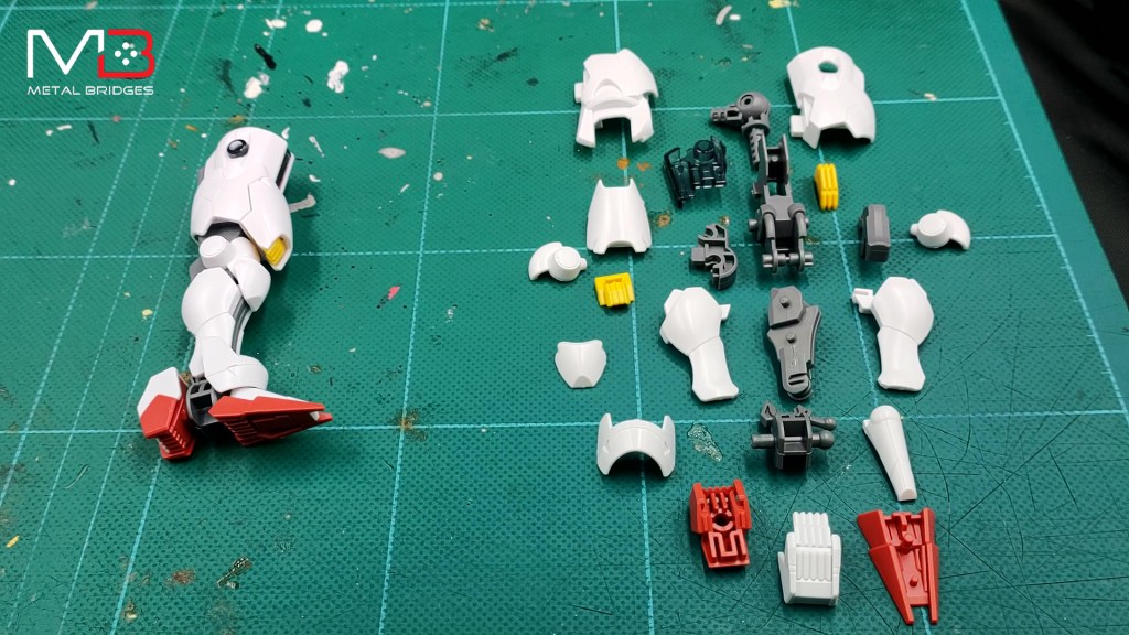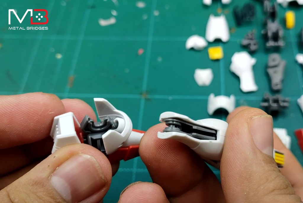 จุดที่ต้องระวัง คือการตัด Shell Unit ที่เป็นแผงพิมพ์มาจากโรงงาน ควรตัดให้เหลือติ่งเล็กๆซักนิด เพื่อใช้เชื่อมต่อกับชิ้นส่วนหน้าอกของตัวหุ่น ถ้าตัดโล่งเลย จะยึดไม่อยู่ ต้องยิงกาวเลยนะ!
