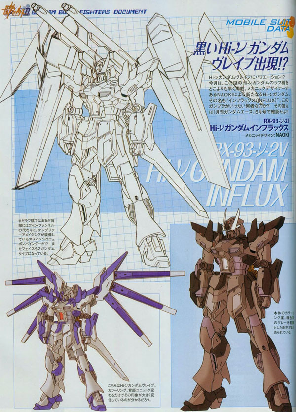 ซึ่งหุ่นรบตัวนี้ ได้รับการพัฒนามาจากการรวมลักษณะเด่นของ RX-93-ν2 Hi-ν Gundam , RX-93-ν2V Hi-ν Gundam Vrabe และ MBF-C01 Command Astray Gundam โดยตัวหุ่นได้เป็นผลงานการออกแบบของ Naoki ซึ่งในเนื้อเรื่อง Allan Adams ได้พัฒนาและสร้างหุ่นรุ่น RX-93-ν2I ขึ้นมา กันพลาตัวนี้ พึ่งเปิดพรีออเดอร์ไปเมื่อวันที่ 20 มกราคมที่ผ่านมาไปมัด ๆ และมีกำหมดออกวางจำหน่ายประมาณเดือน เมษายน 2016 นี้ นั่นเอง…