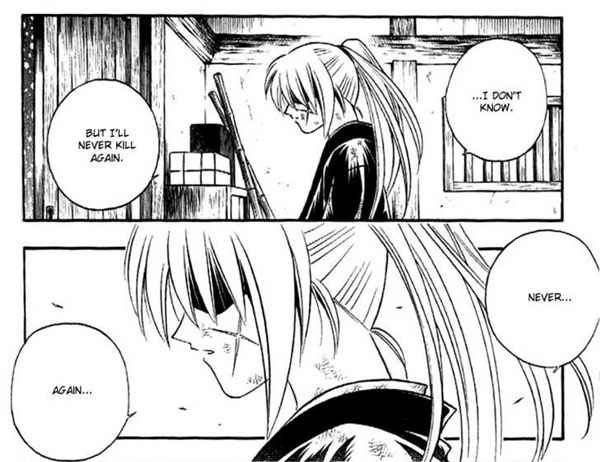 และเปลี่ยนชื่อของ “ชินตะ” เป็น “ฮิมุระ เคนชิน” (เคน=ดาบ / ชิน=วิญญาณ รวมกันก็คือ จิตวิญญาณแห่งดาบ นั่นเอง) เพื่อใช้วิชาดาบ ออกปกป้องผู้คนตามเจตนารมย์ของเซจูโร่นั่นเอง…