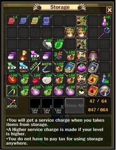 ผู้เล่นสามารถเก็บไอเทม โดยจะต้องเสียค่าใช้จ่ายค่าธรรมเนียมเมื่อนำไอเทมกลับคืน