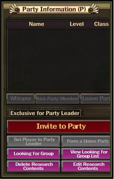 ผู้เล่นสามารถตรวจสอบระดับเลเวล อาชีพและชื่อของผู้เล่นที่พวกเขาอยู่ในปาร์ตี้ด้วย