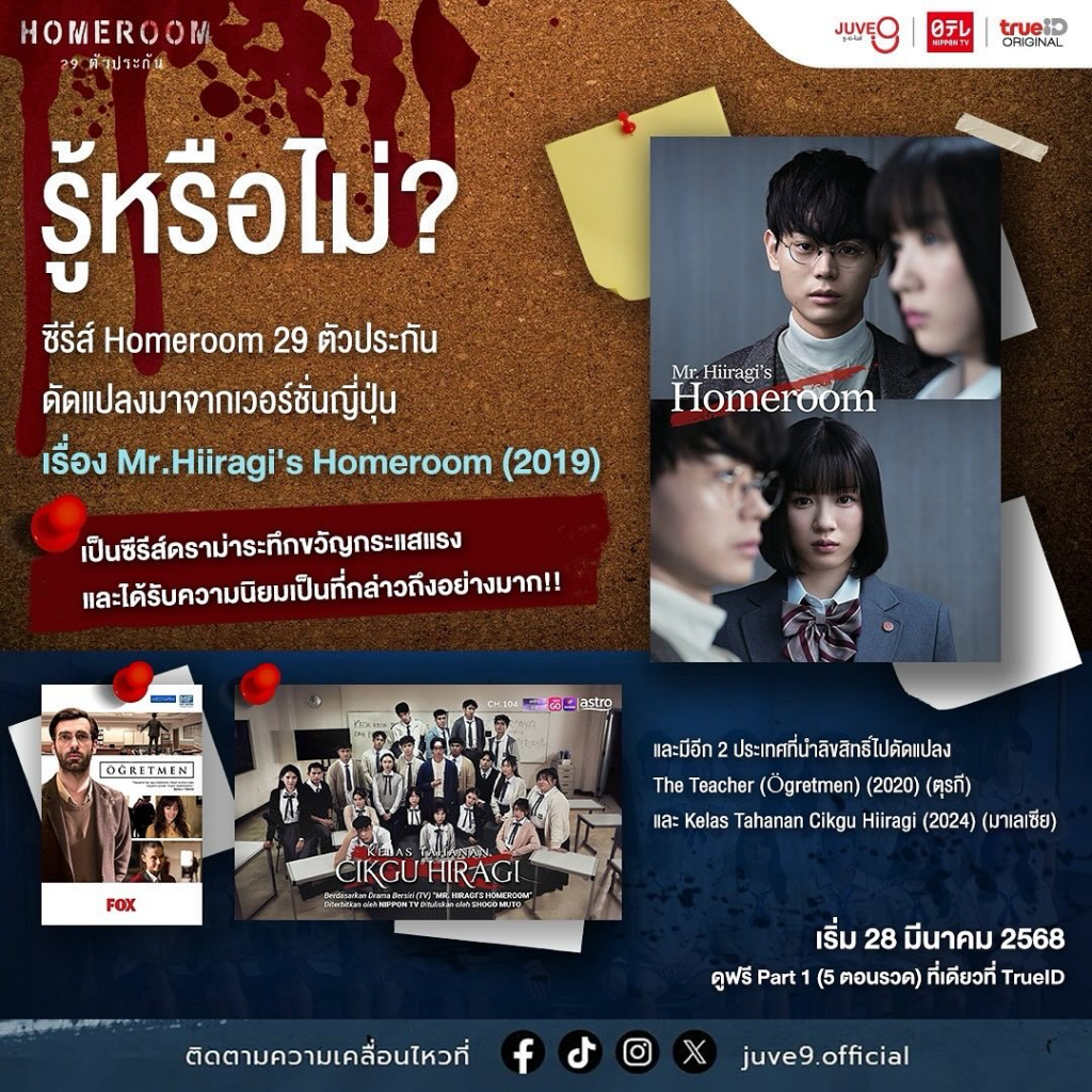 ถือเป็นซีรีส์อีกเรื่องที่น่าสนใจสำหรับ Homeroom 29 ตัวประกัน ซีรีส์ระทึกขวัญที่เป็นการรีเมคจากซีรีส์ดังของญี่ปุ่นอย่าง “Mr. Hiiragi’s Homeroom: 3 Nen A Kumi” จนเป็นกระแสโด่งดังมาแล้ว ซึ่งจะลงจอตอนแรกวันที่ 28 มีนาคมนี้ ดูฟรีกันแบบจุกๆ 5 ตอนรวดที่ True ID โดยได้มีการปล่อย Teaser เรียกน้ำย่อยมาแล้ว