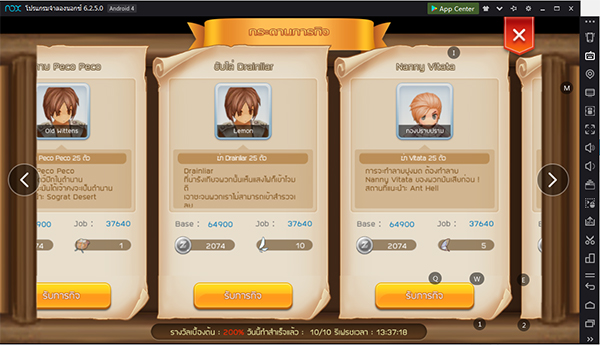 จัดว่าเป็นหนึ่งในสิ่งที่ต้องทำรายวันอยู่แล้ว กับเควสท์กระดาน โดยเควสท์กระดานพวกนี้ จะมีค่าตอบแทนตามเลเวลของตัวผู้เล่น ยิ่งเลเวลสูง ของตอบแทนจำพวกค่า EXP และเงิน รวมไปถึงไอเทมที่ได้ก็จะเยอะขึ้นตามไปด้วย (ใครขี้เกียจเล่นเควสท์ เติมเงินซื้อข้าวปั้น แล้วแลกเป็นคูปองเคลียร์เควสท์ได้ 1 วัน แลกซื้อได้ 10ชิ้น จบได้ 10เควสท์เท่านั้น)