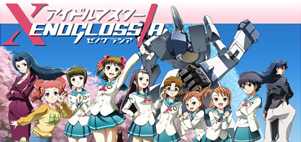 Idolmaster: Xenoglossia เป็นภาคแรกในปี 2007 ที่ถูกนำเสนอออกมาในแนวหุ่นเหล็ก ทุบอุกาบาตชนโลกสร้างโดยทางสตูดิโอ Sunrise มีทั้งหมด 26 ตอนจบ