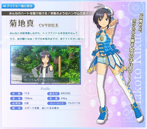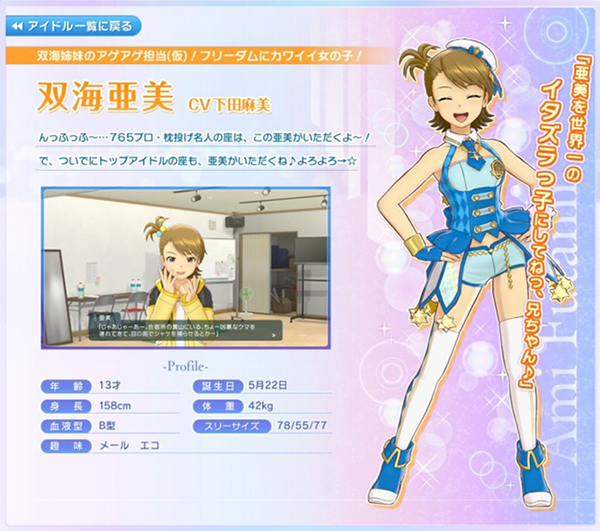 สาวน้อยวัยใสผู้รับบทเป็นตัวเอกของเกมนี้ เธอเป็นสมาชิกในวงไอดอล 765 Idol ที่มีความมุ่งมั่นในการเป็นไอดอลอย่างมาก จึงได้เดินทางมาทำความฝันของตัวเอง มีนิสัยที่ค่อนข้างซุ่มซ่าม ชอบร้องคาราโอเกะ ชื่นชอบการทำขนม เป็นเพื่อนสนิทกันกับยาโยอิหนึ่งในสมาชิกวงไอดอลร่วมกัน