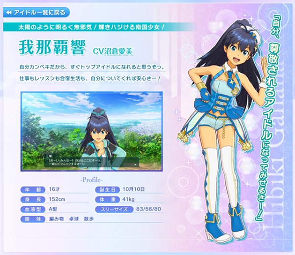 สาวน้อยหนึ่งในสมาชิกวงไอดอล 765 Idol ทั้งยังเคยเป็นหนึ่งในสามสมาชิกเก่าในนามของโปรเจ็คท์ แฟรี่ จากสังกัด 961 Production พื้นเพดั้งเดิมของตัวเธอนั้นเป็นคนแถบโอกินาว่า จึงมักจะพูดสำเนียงพื้นเมืองให้ได้ยินอยู่บ่อยๆ เป็นคนที่มีความกระฉับกระเฉง แรงเหลือร้น ทั้งยังมีอัธยาศัยดี มีความเป็นกันเอง ไม่ถือตัวกับทุกๆ คน