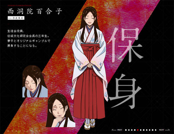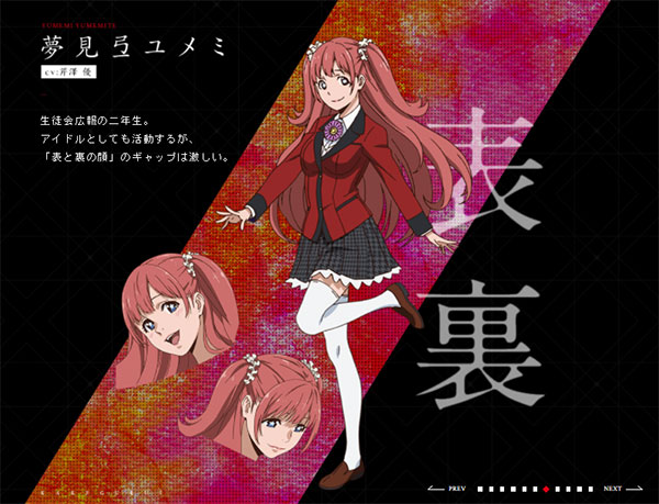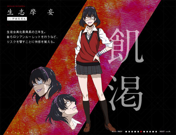 เด็กสาวที่เป็นหนึ่งในคณะกรรมการสภานักเรียนของโรงเรียนเอกชนเฮียคคะโอ นักเรียนปีสาม มีนิสัยแปลกๆ ที่ชื่นชอบการพนันเสี่ยงตายอย่างการใช้รัสเซี่ยน รูเล็ต แต่หลังจากที่พ่ายแพ้ให้กับยูเมะโกะ เธอก็เริ่มที่จะติดตามยูเมะโกะมากขึ้น